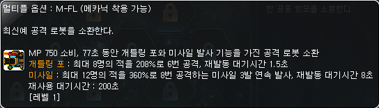 - 호밍미사일, 로보런쳐, 마그네틱 필드, 매시브파이어, 로보팩토리, 디스토션필드